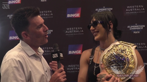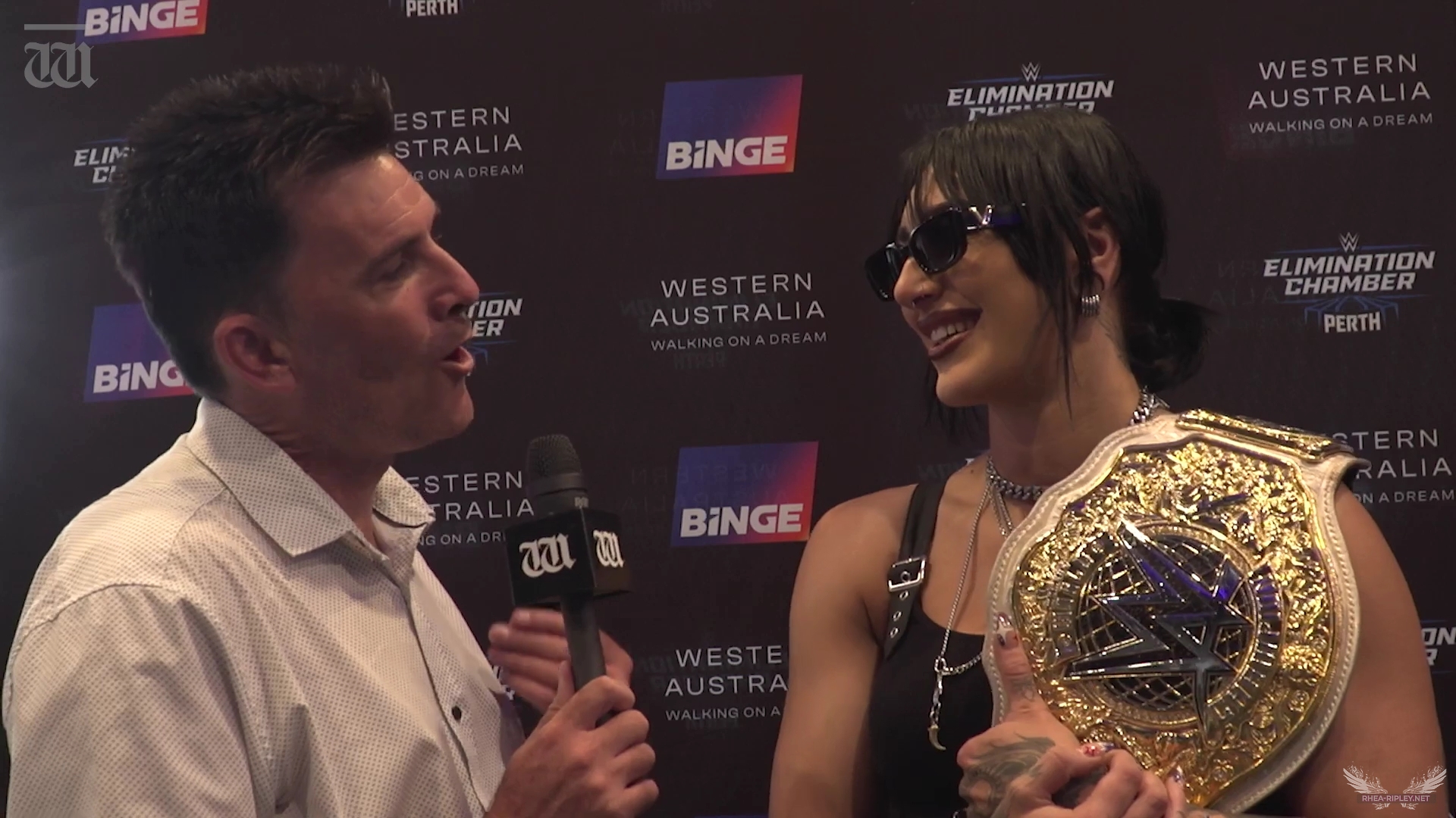 | Home > Screen Captures > Interviews > WWE Elimination Chamber eve interviews with Rhea Ripley, Seth Rollins and more |The West Sport |
