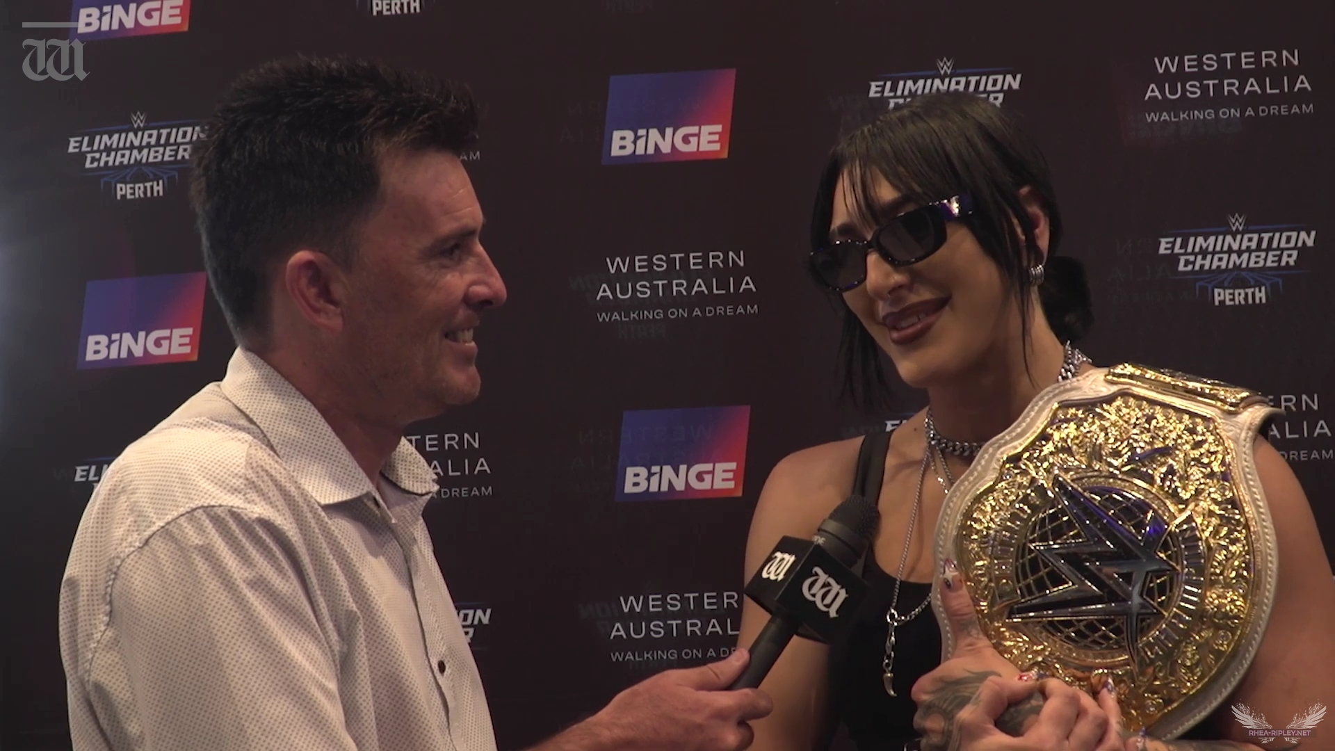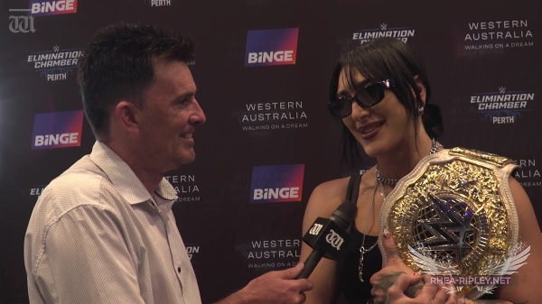 | Home > Screen Captures > Interviews > WWE Elimination Chamber eve interviews with Rhea Ripley, Seth Rollins and more |The West Sport |