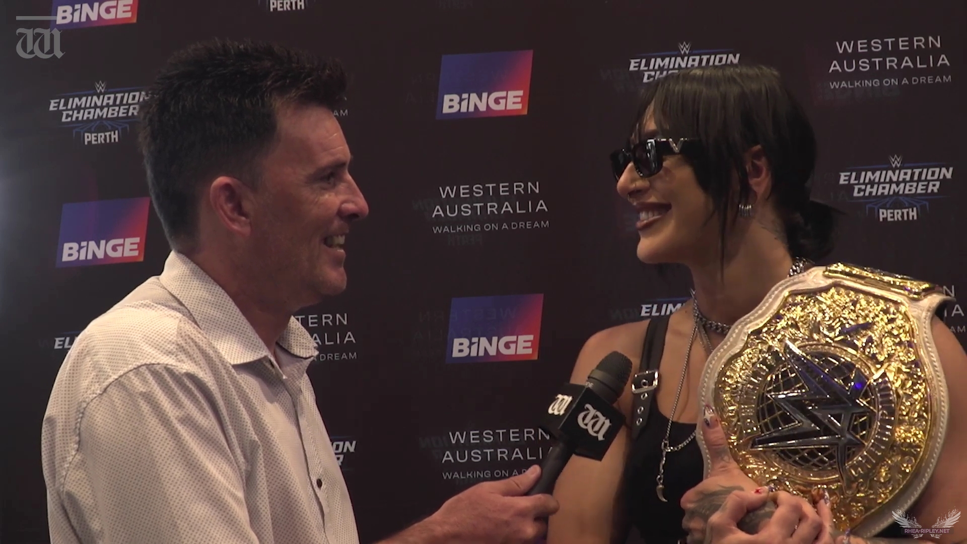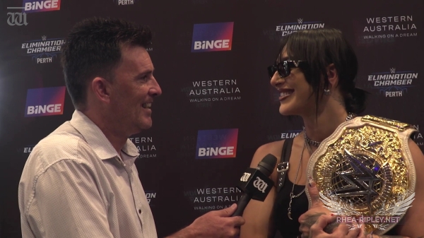 | Home > Screen Captures > Interviews > WWE Elimination Chamber eve interviews with Rhea Ripley, Seth Rollins and more |The West Sport |