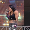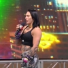 The theme for Dominik Mysterio hits and the CWC crowd begins booing like crazy. “Dirty” Dom emerges with his NXT North American Championship and Rhea Ripley by his side. He is handcuffed and dressed for Halloween like a prisoner.
